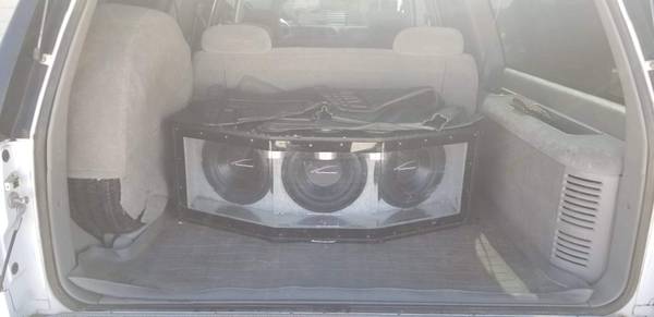 1999 suburban looking for a good home, has 174,000 miles. Both front and rear a/c and heaters work, gray interior no holes or stains on seats. Has full set or floor mats including cargo area. Comes with 1000 wat amp and 3 10″ subs and DVD players in headrests.